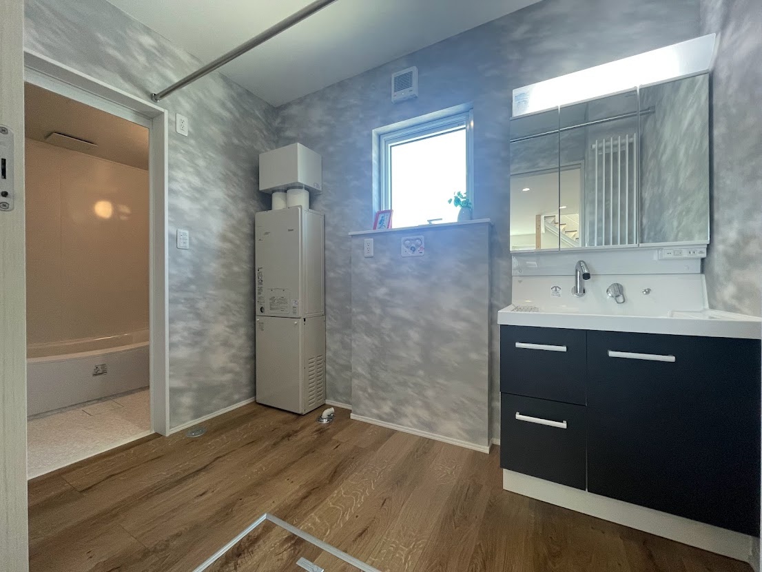 キッチンの裏側には浴室・洗面室が。暖房・給湯はエコジョーズです。