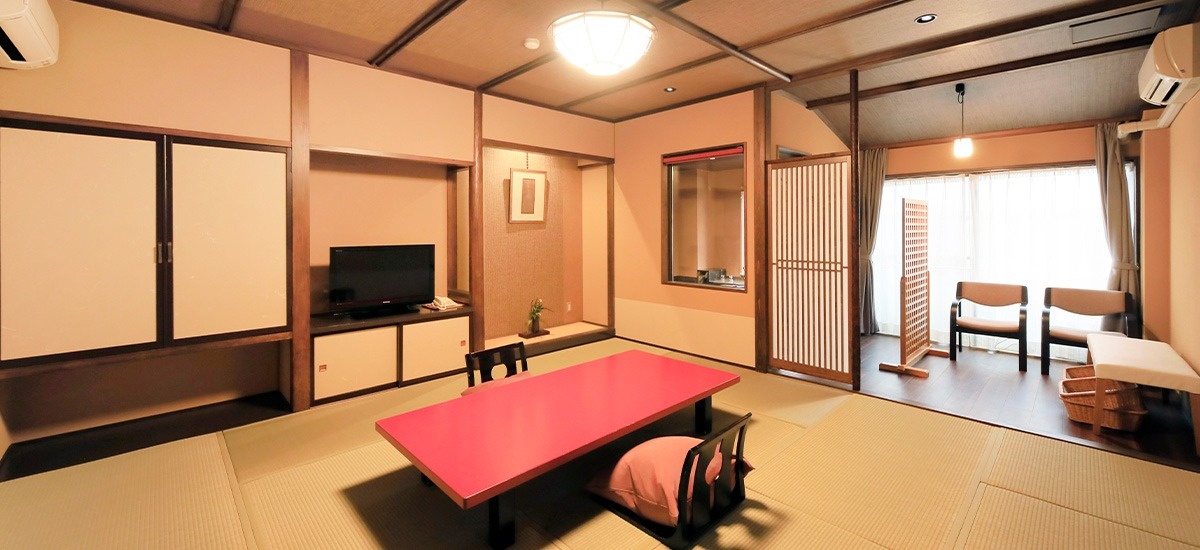 12〜12.5畳の和室や、モダンテイストな和洋室、リビング付きの特別室まで様々なスタイルのお部屋があります。