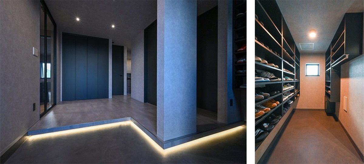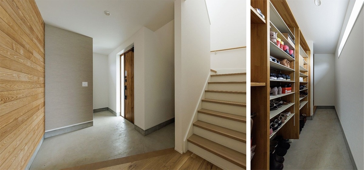 明るい光が差し込む玄関土間には、広いシューズクローゼットを確保しました。
