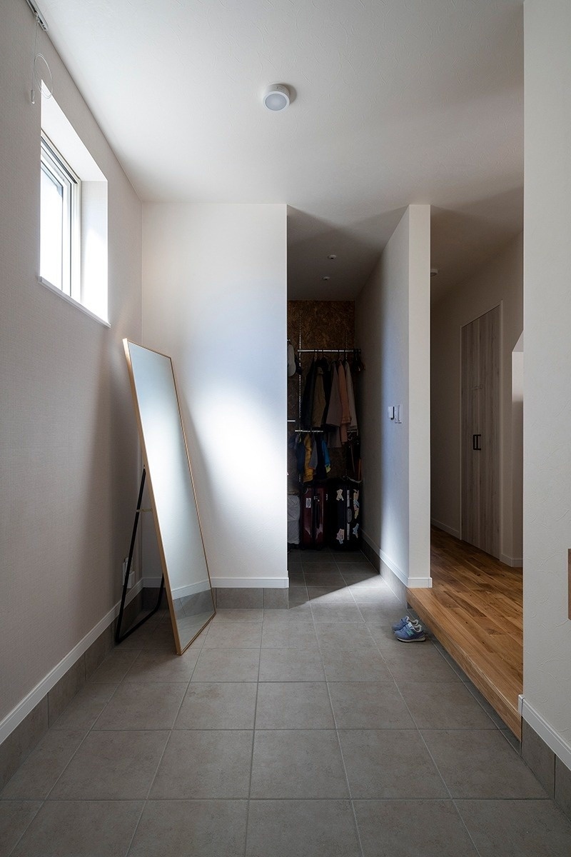 外で身につけていたものを室内に持ち込まない動線 東神楽町T邸/昭和木材