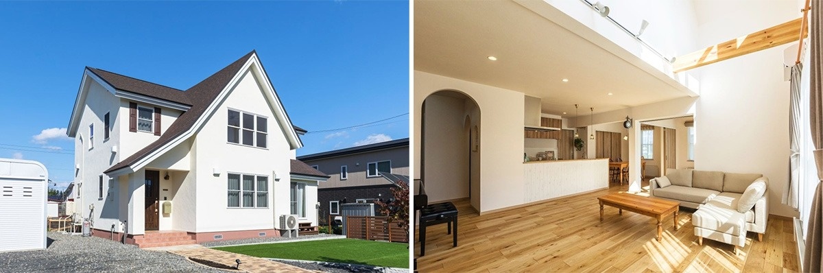 「可愛らしすぎないカントリー」を目指したというY邸。木の風合いや色使い、アーチ型の開口などで部屋全体に温かみをもたせつつ、計画的に作った収納ですっきりと家事がしやすい家を実現しました。