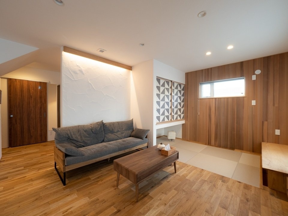 この住まいは、(株)キクザワに勤務する女性社員、佐久間ちなさんとご主人のご家族が建てました。