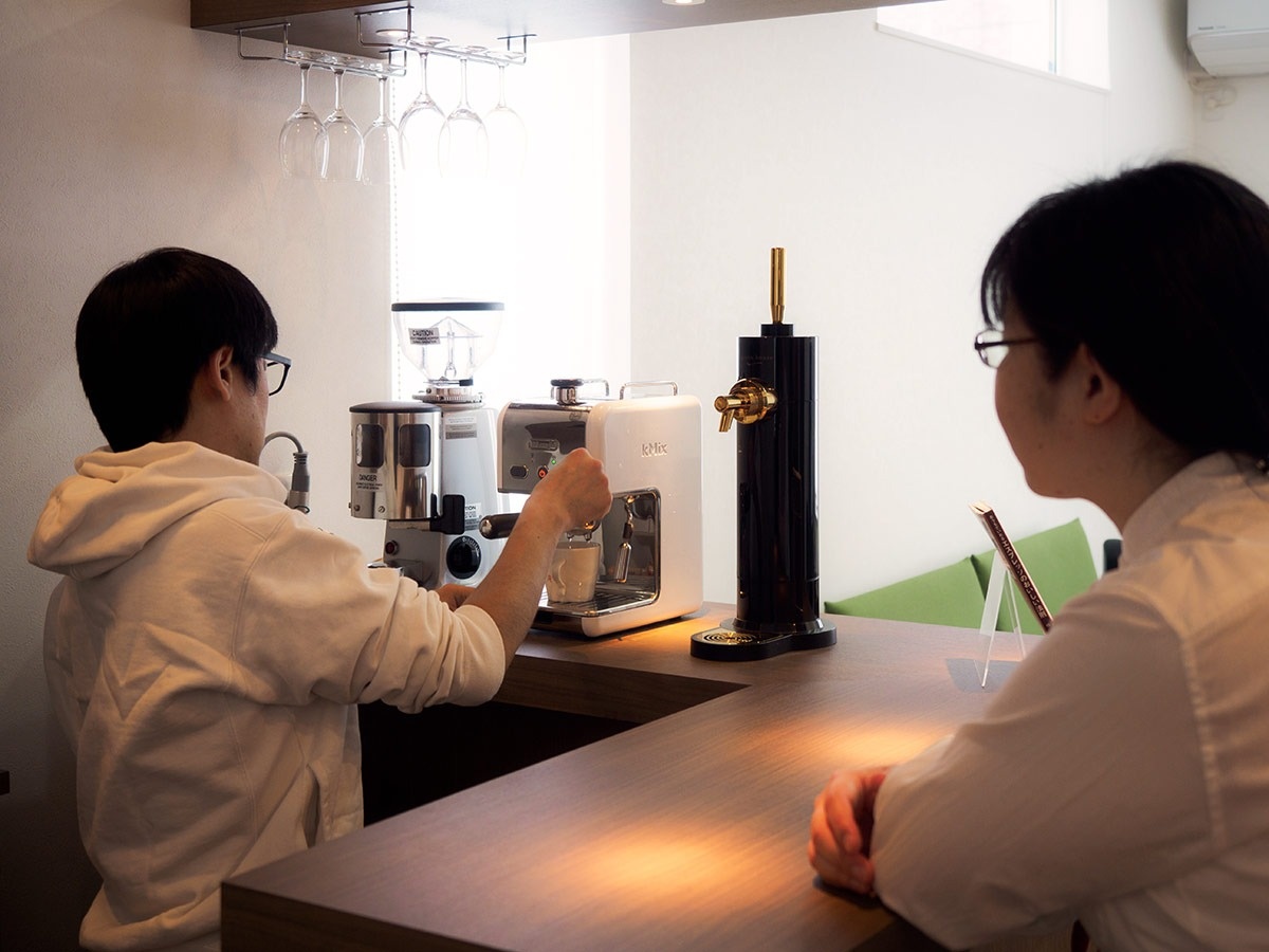 Kさんは、カフェや喫茶店をはしごして研究したぐらいのコーヒー好き。 このカフェカウンターを作ることは、家を建てるときに外せない条件でした。 「ブレイン札幌さんは、新築の相談をした5社の中で真っ先に『それはおもしろそう』と乗ってくれました。とにかく熱心に提案をしてくる会社でした」とご主人。