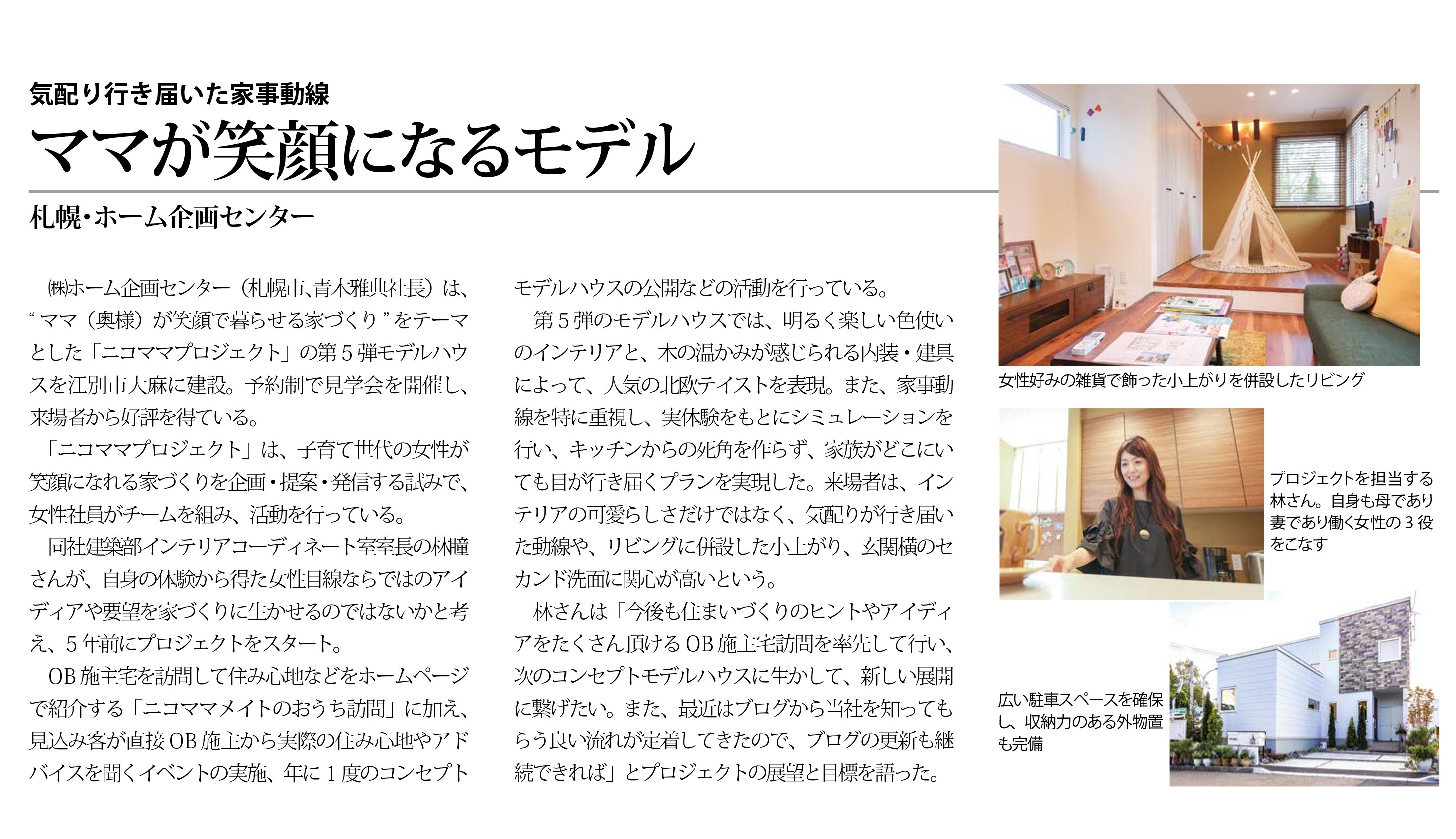 2018年10月5日 北海道住宅新聞3面記事 気配り行き届いた家事動線 ママが笑顔になるモデル