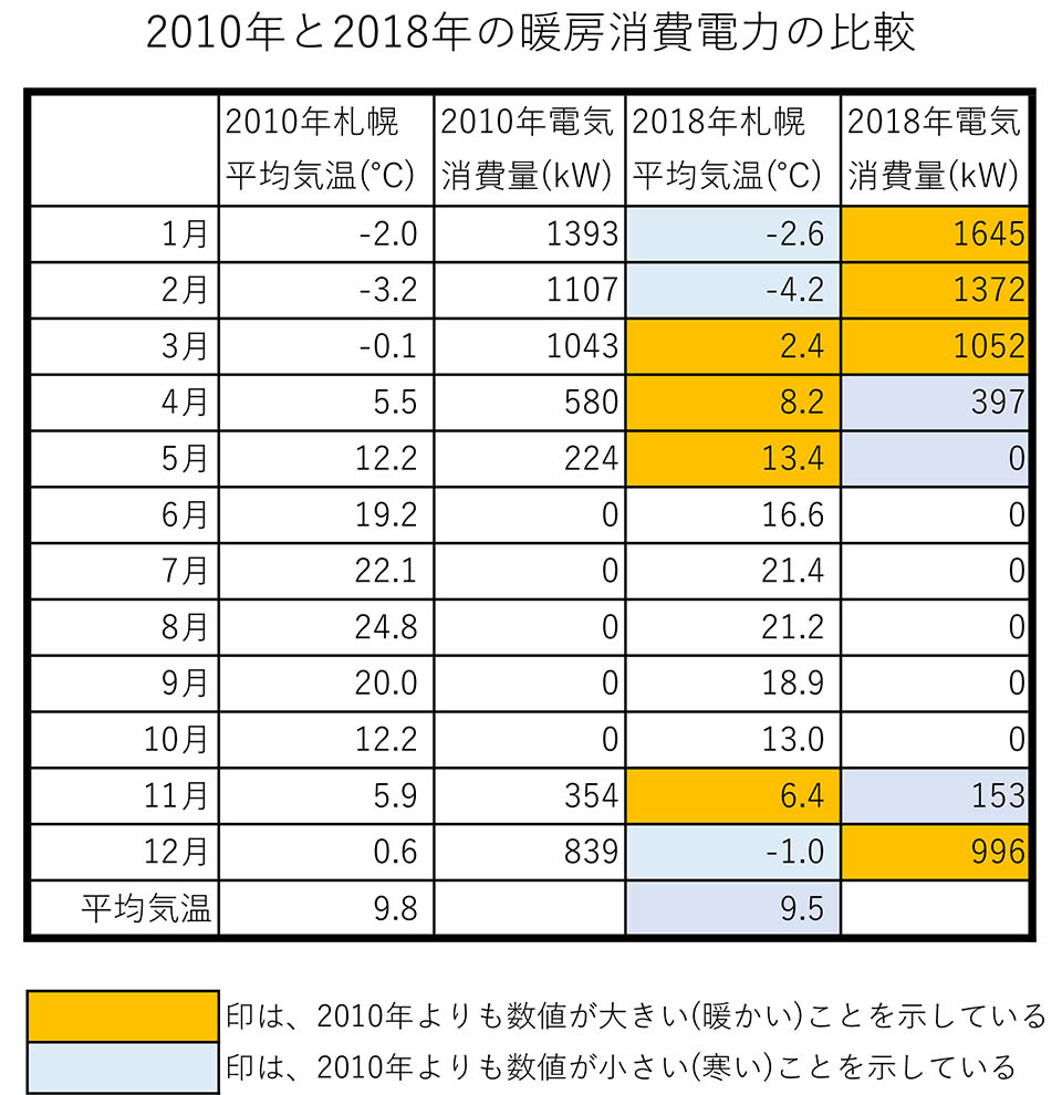 「暖房を21~22℃に設定していますが、少し動くと暑いくらい」と奥様。上の表の通り、暖房用の電力消費量は外気温とほぼ連動して増減しており、年間トータルの暖房用電力消費量は8年前と変わっていません。新築時から性能が劣化していないことがわかります。