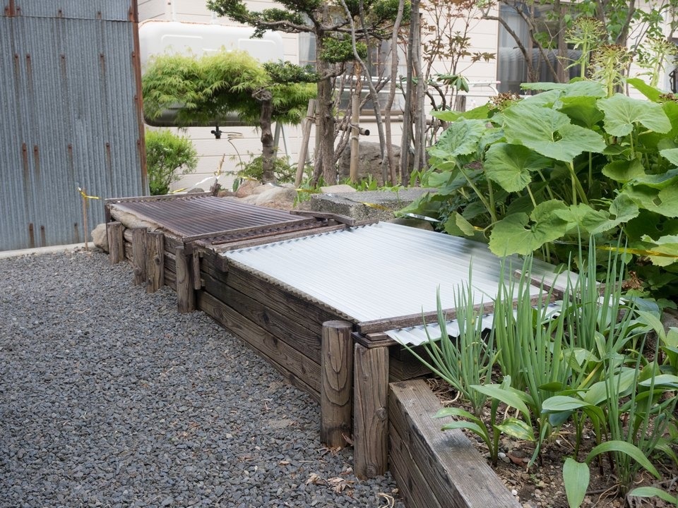 お庭の奥には生ゴミから堆肥を作るコンポストがあります。生ゴミの再利用によって春夏の1回に出す燃えるゴミの量を5L程度に減らせるとか。