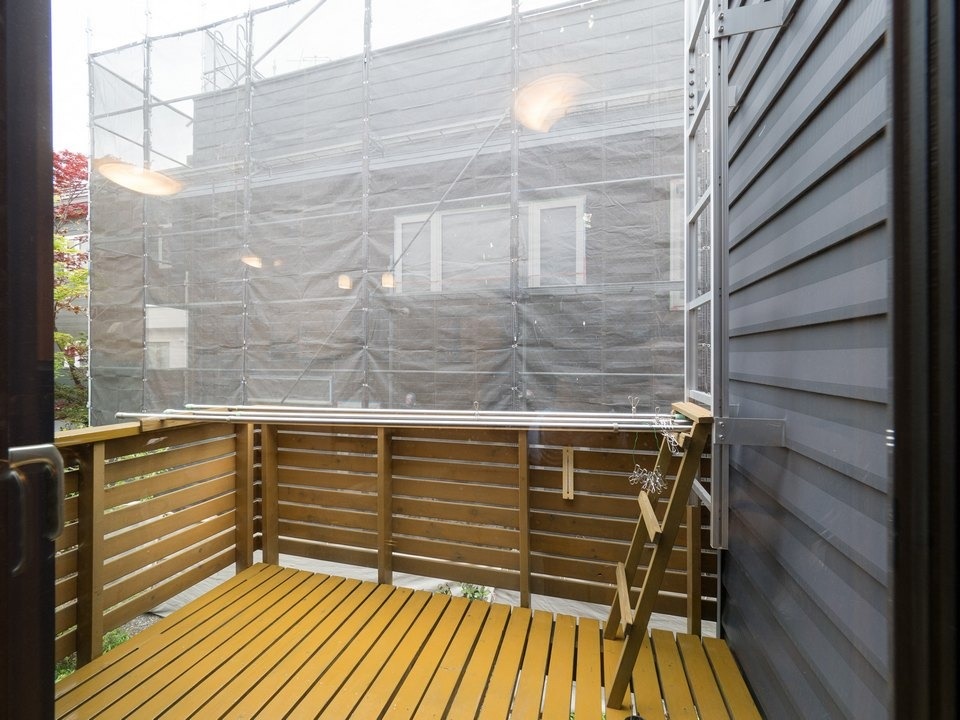 物干し台として重宝しているバルコニーの管理はご主人の担当。毎年、気温の低い春先に植物性の塗料で塗装します。その甲斐あって新築から10年経っても積雪による傷みや腐れのない美しい状態を維持しています。