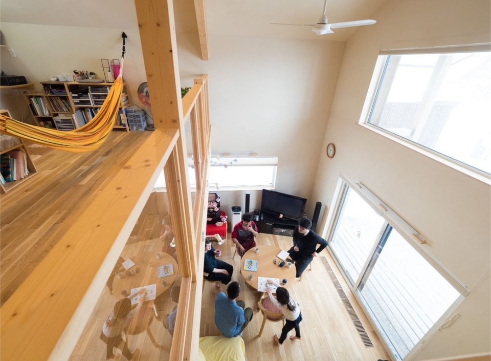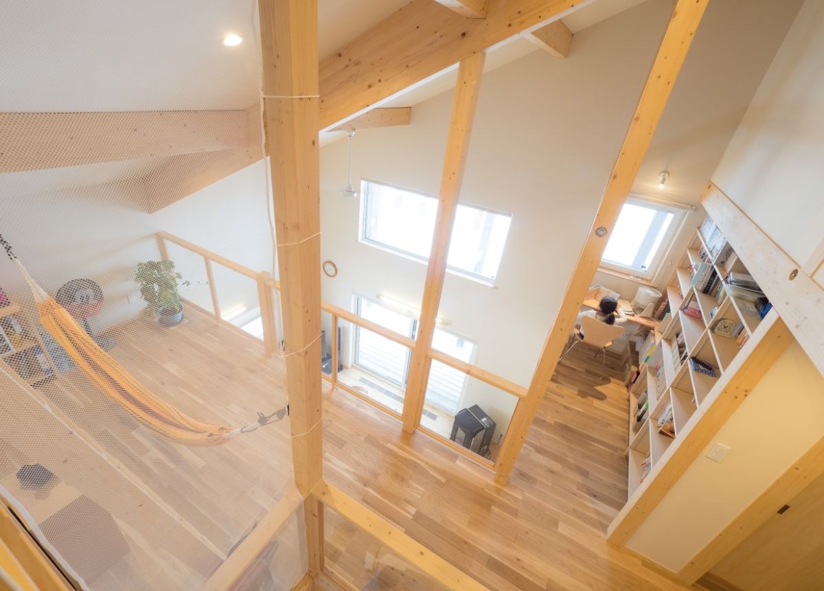 「吹き抜けを作ると暖かい空気が上に逃げて、1階が寒くなるのでは?」と心配をされる方もいますが、住宅の気密断熱性能が一定レベルを超えると、家全体が少ない暖房エネルギーでもれなく暖まるので、吹き抜けを設けても上下の温度差もほとんどないので一階が寒いということはありません。