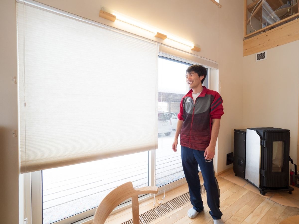 断熱・気密性能の低い家なら、朝起きたらすぐストーブを焚かないと寒くて出かける準備もできない、ということもありましたが、この家では、朝でも室内は20℃以上。慌ててペレットストーブを稼働する必要もありませんし、真冬でもペレットストーブを使わない日もあるそうです。