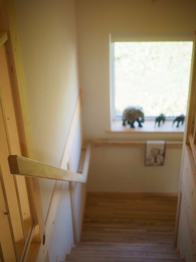 階段の手すりもお気に入りです。「大手ハウスメーカーのモデルハウスで見た手すりは既製品で、見た目も感触も残念でした。この手すりは木の感触が良くて嬉しくなります」と話してくれました。