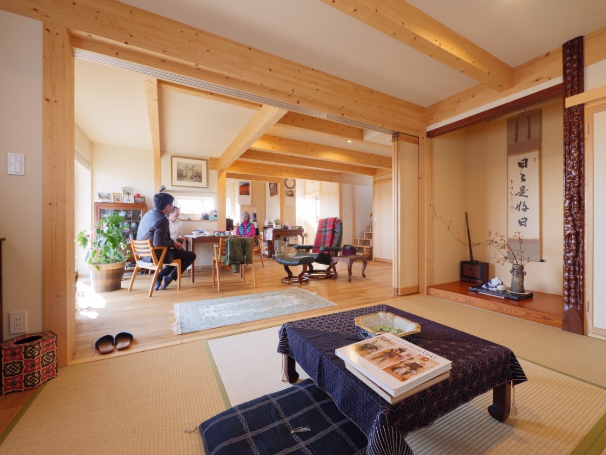 「東川町で藤井さんのオープンハウスを見学したとき、木の梁が見えて、暖かい雰囲気の家で、ひと目みて『あっ!これで良い』と確信しました。応対してくれた藤井さんが、営業トークをほとんどしない、聞かれたことを控えめに話す感じも、ハウスメーカーの営業攻勢に疲れていた私としては好印象でした」と振り返ります。