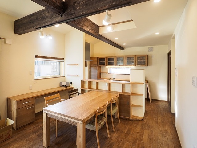 完成見学会:無垢の木の造作家具が映える勾配天井の家