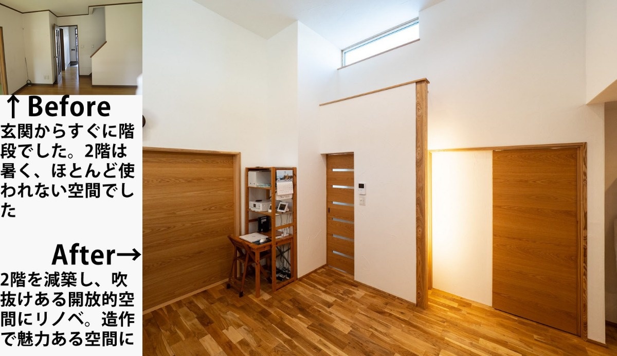 築19年の2階建て注文住宅を減築して平屋に、一部は増築してしてシンプルモダンな住宅にリノベーションしたS邸。現地を確認した金谷常務からお墨付きをもらうほど内装の状態は良かったそうですが、間取りや基本となる断熱性能は大きな課題でした。