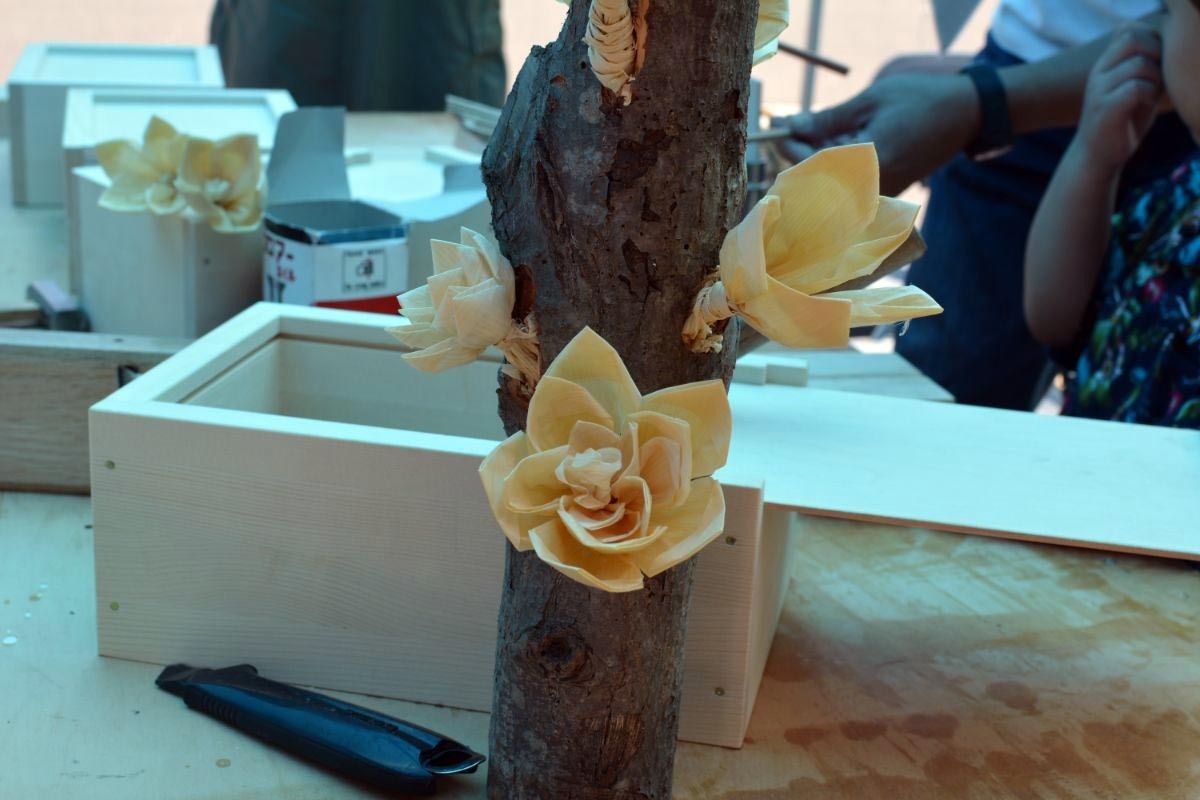 カンナ削りをやったことがある人はほとんどいないので、大人も子どももやってみたい!木材の表面がツルツルに磨かれて、皆さん驚いていました。