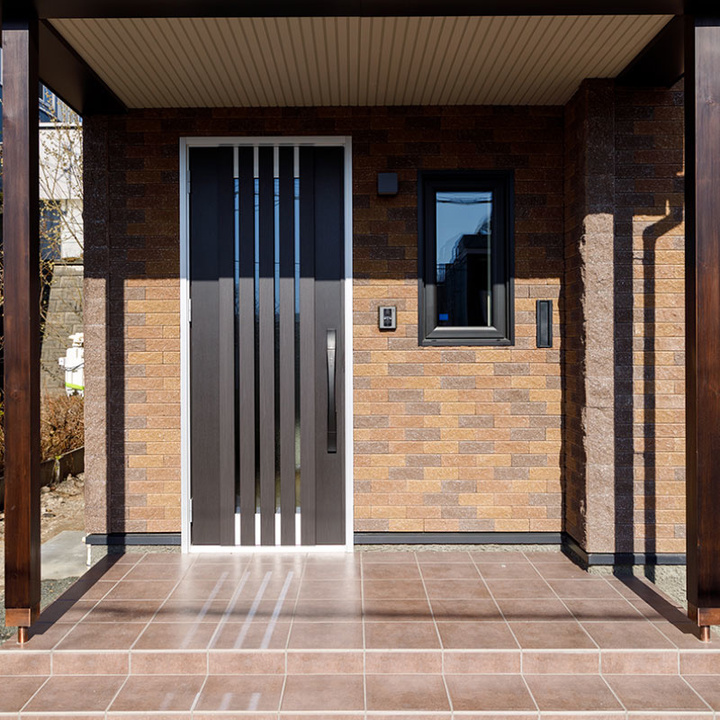 プラン・デザインを見ると、エクステリアは高い耐久性と自然素材ならではの風合いが特徴の“次世代レンガ”による外装仕上げが印象的。屋根はメーカー30年保証の石付金属瓦・コロナルーフを採用するなど、維持管理・メンテナンスの負担がほとんどかからないよう配慮されているのも、住まい手にとっては嬉しいポイントです。