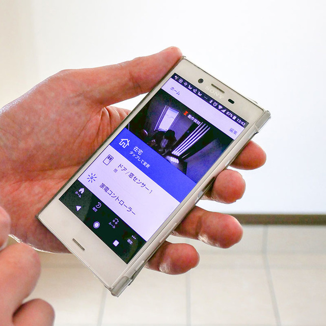 このシステムを利用することでどんな暮らしが実現できるのかと言うと、例えば共働き世帯では、室内のセンサーやカメラによって、お子さんが無事に学校から帰宅したかどうか、室内で安全に過ごしているかどうかを、スマートフォンに通知したり、撮影画像をメール送信してくれるため、職場にいても子供の様子がわかるのが大きなメリット。玄関ドアの解錠と連動してエアコンや照明を付けることもできます。