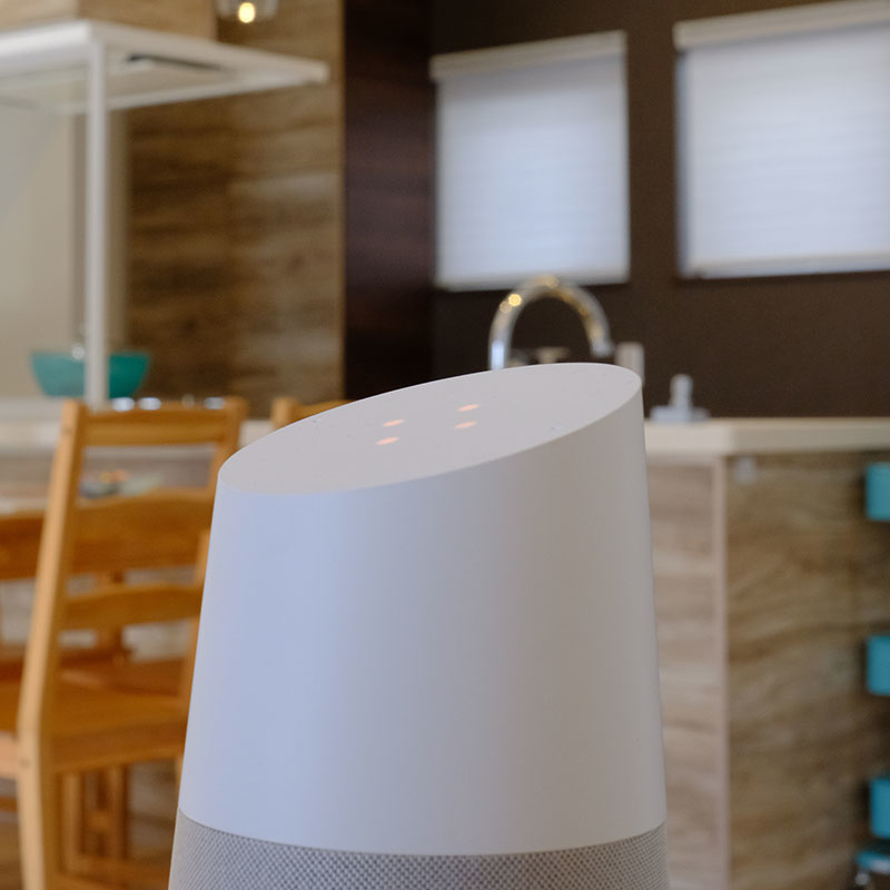 「OKグーグル。ダイニングの照明を付けて」。スピーカーに向かってこう話しかけると、ダイニングのペンダントライトがパッと灯る―。