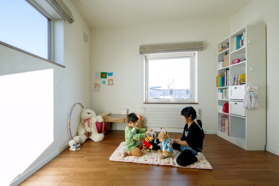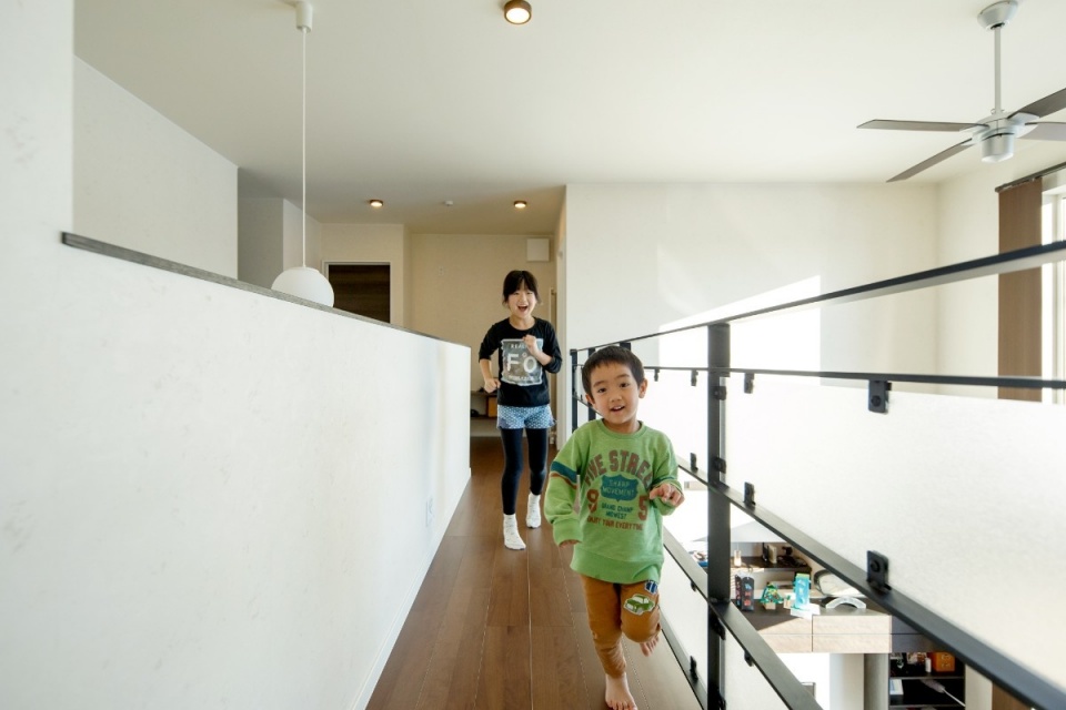 ご主人のデザイン面のこだわり、奥様の住宅性能などの要望にしっかり向かい合い、丁寧な住まいづくりが実現できました。お子さんたちも、新居がとっても嬉しそうで、元気いっぱい撮影に協力してくれました。