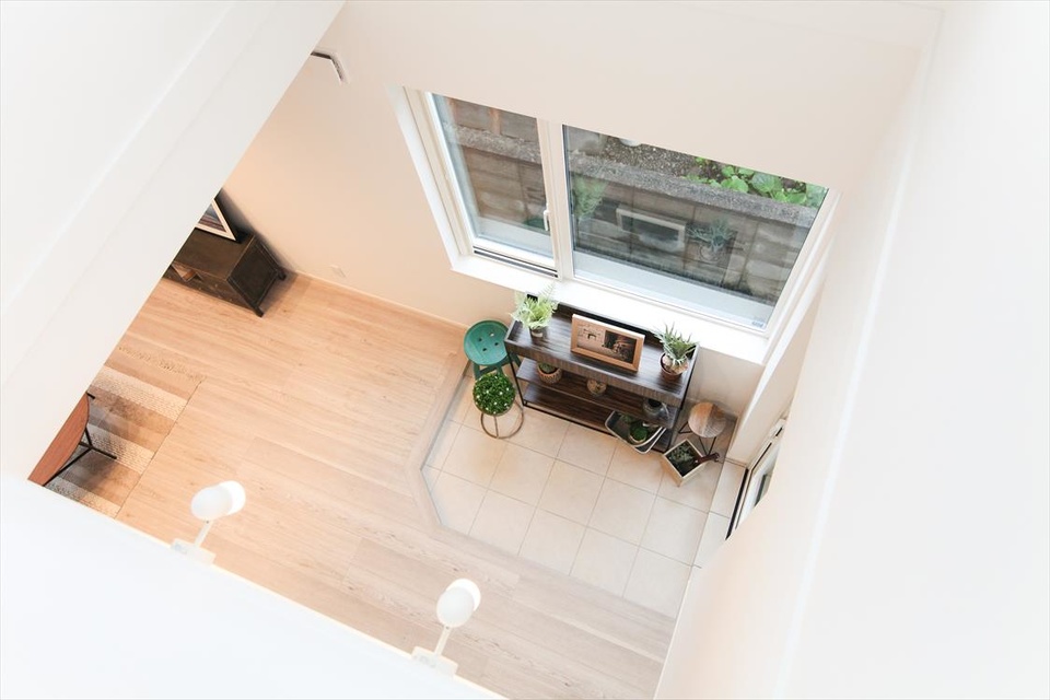 インナーテラスの上は吹き抜けになっていて、採光たっぷり。