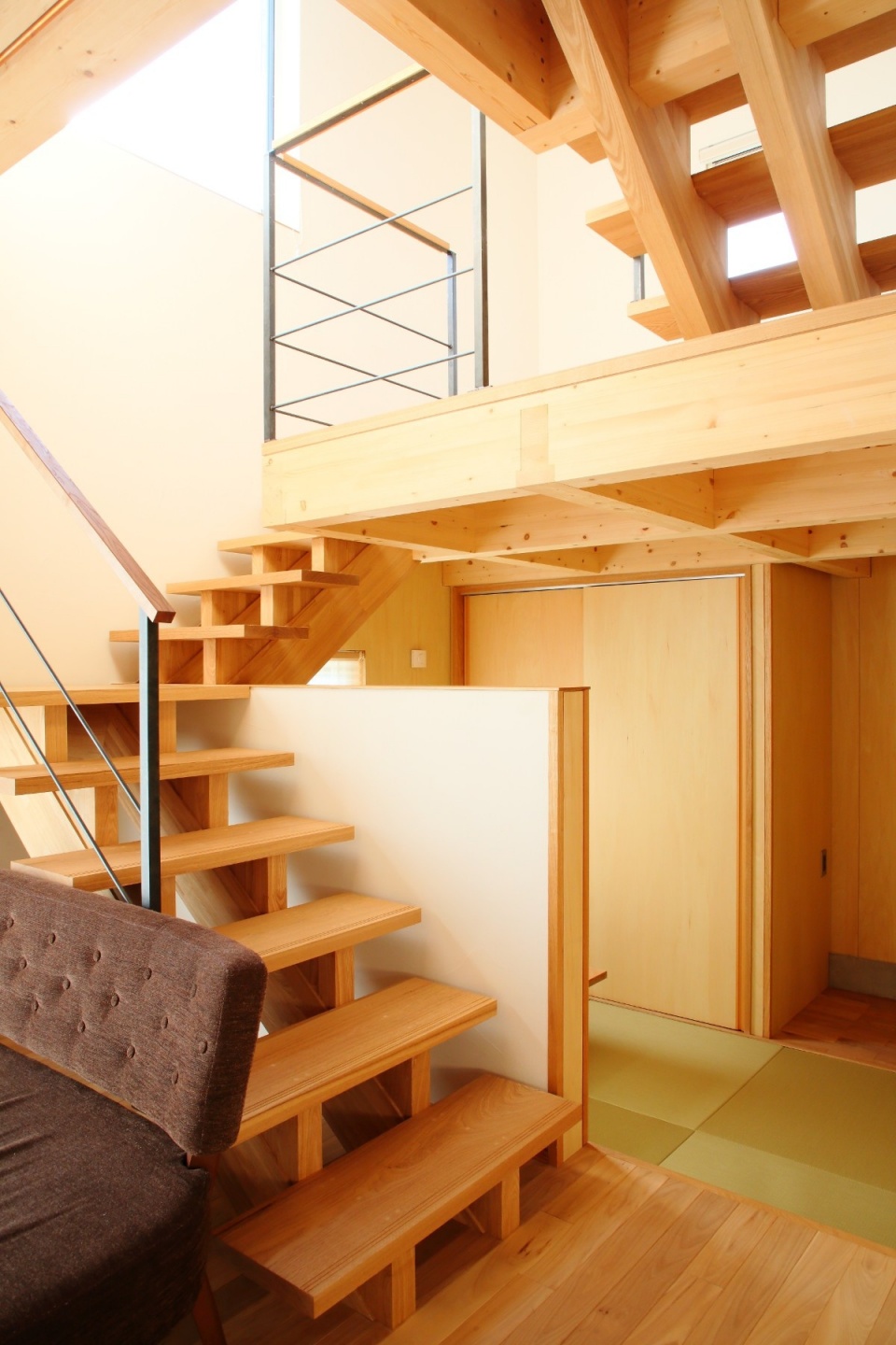 階段は、中2階の「共有スペース」がある「スキップフロア」。パソコンを使ったり、娘さんが絵を描く時や、スタディーコーナーとしても使用しています。