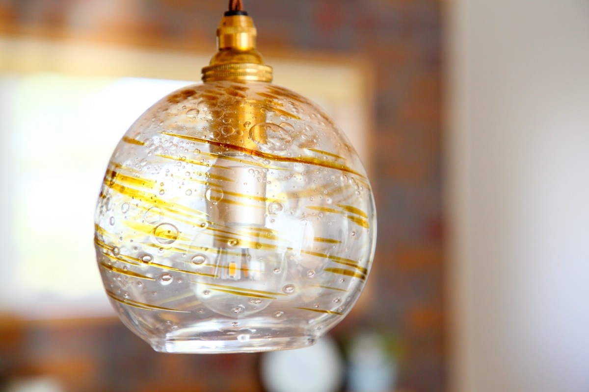 奥さま 「ガラス工房でオリジナルの照明も作っていただきました」