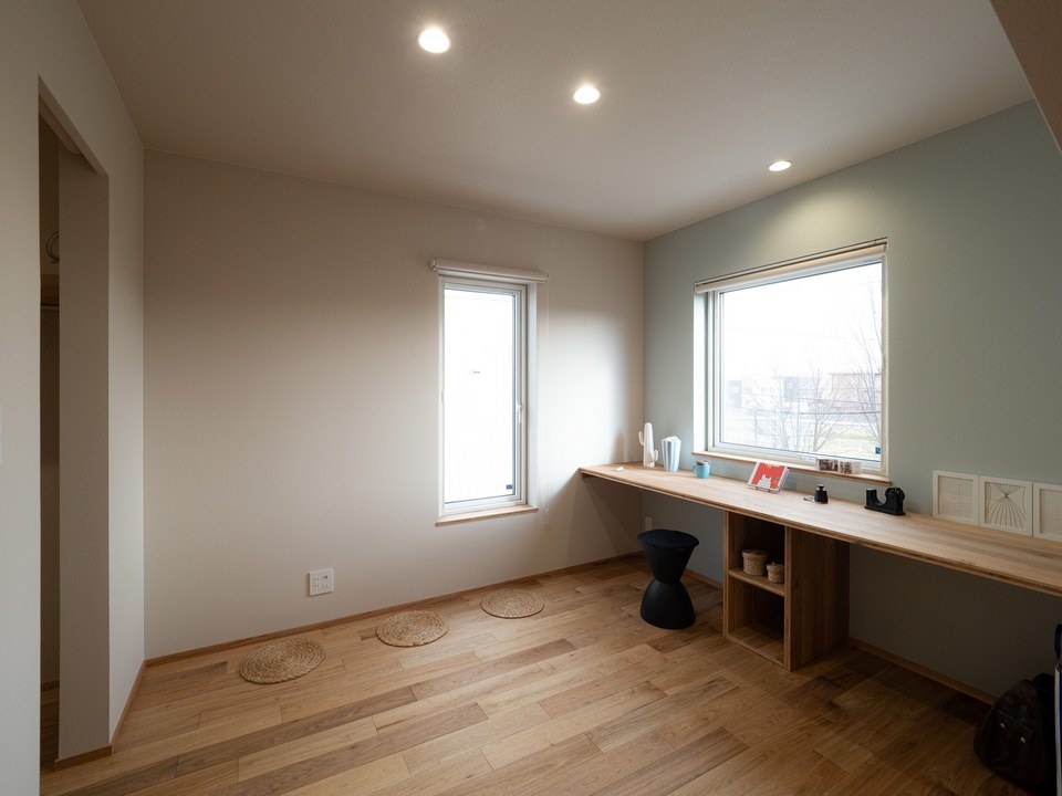 吹抜けに面した2階書斎コーナーはご主人の希望。約5.3畳あり、将来的には居室として使うことも想定しています。