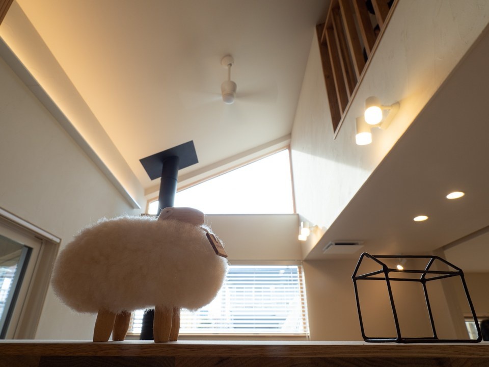 薪ストーブはシノザキ建築事務所からの提案。薪ストーブ1つで上下階の暖房をまかなえるのは、断熱・気密がしっかりとしている証です。