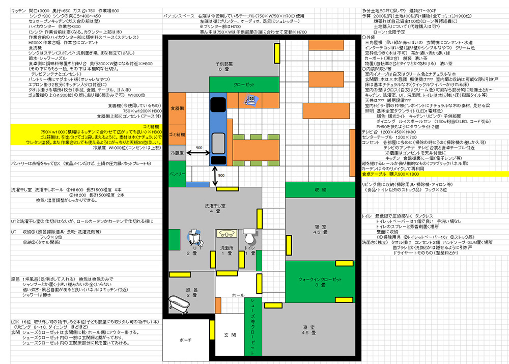 家づくりに関する書籍やインターネットを使って、情報収集をしていたご主人。自分で間取り図をつくり、より具体的な希望を伝えました。