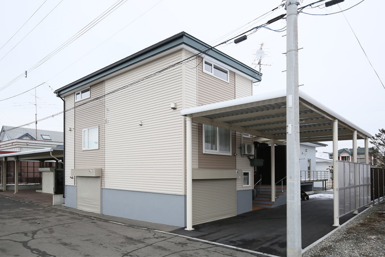 リノベーション前後の写真を見比べると、庭に面して出っ張っていたリビング部分などがカットされ、建物の幅が少しだけスリムになっています。また、庭も縮小し、代わりに雪除けの大型カーポートを設置しました。