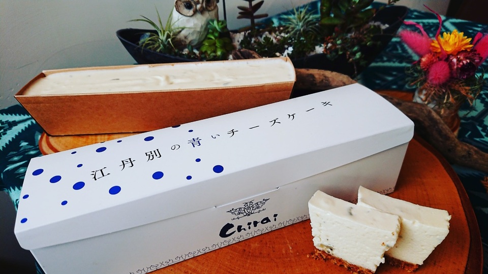 シェフとして、江丹別に美味しいブルーチーズがあるというのは大変な魅力だと感じました。「江丹別の青いチーズを料理に活かしたい」というのは江丹別移住への大きな動機になりました。2019年末には、「江丹別の青いブルーチーズケーキ」を伊勢さんと嵯城さんが共同開発し、店頭だけでなく販売も開始しています。facebook頁から注文・申し込みできます。詳しくはこちら