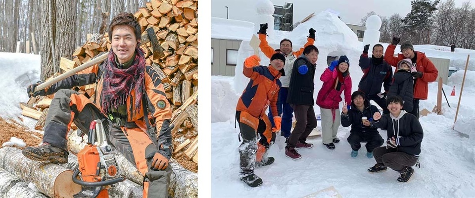 藤原さんは、その構想を最初、伊勢ファームの森を管理・整備している木こりの清水省吾さんに相談しました。清水省吾さんはフリーのキコリ&ハンター(罠)、命師。伐らないキコリ、エッセンシャルな林業を展開しています。旭川雪まつりで、旭川圏に観光に訪れるムスリムの方々を歓迎するための雪像(モスクの礼拝堂)づくりのために、藤原さんが木こりの清水さんに「チェーンソーで雪像づくりできますか?」と聞いたのがきっかけです。