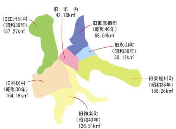 江丹別は、昭和30年までは「江丹別村」でした。現在は旭川市に編入され、旭川市内です。