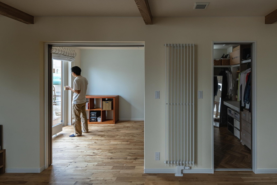 「将来はこのクローゼットと客間を合体させ、収納付きの寝室にすることも出来ます」と三好さん。Kさんご夫婦は、将来的に1階だけで生活ができる間取りを希望しており、現状の使いやすさだけでなく、先を見据えた設計になっています。