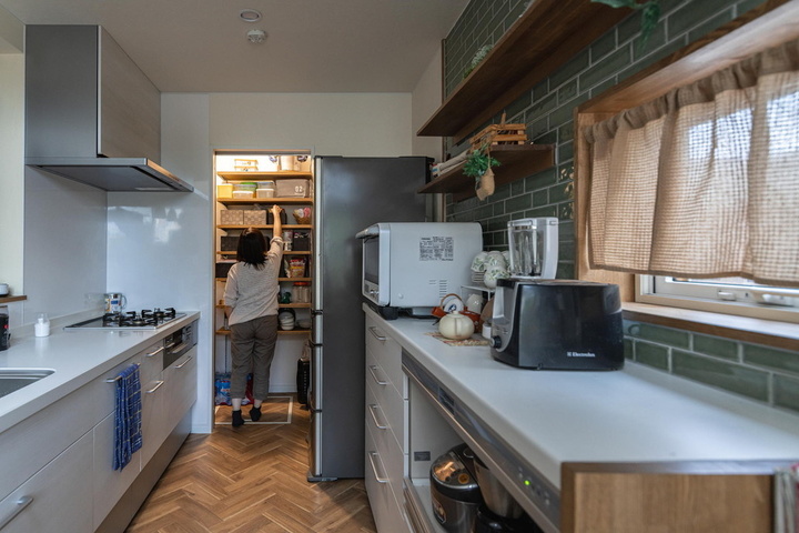 対面キッチンや、キッチン奥のパントリーは奥さまの希望。