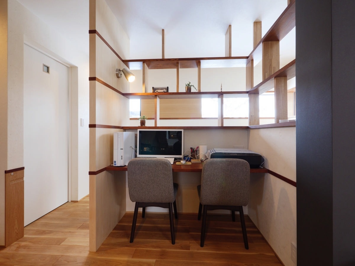 「ハウスメーカーには頼む気はしませんでした」とHさんご夫妻。周りから、注文住宅でも多くの制限があって結局は望み通りの家が建てられない話を聞いていたからです。4年前から新しい家づくりを考え、建築関連の本を読み込んで勉強していたというHさん。ご夫婦で図面も作っていたといいます。