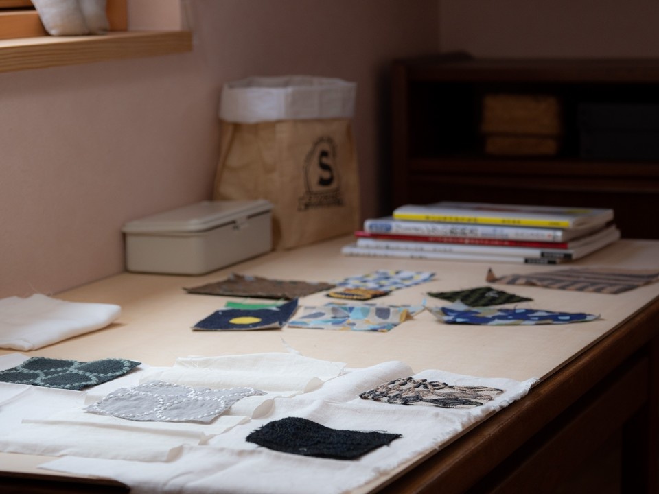 様々な趣味があるAさんは裁縫も得意。机上には北欧柄の小布が広げられていました。「何日も眺めていると、これだ!という組み合わせを思いつくことがあるんです」とAさん。