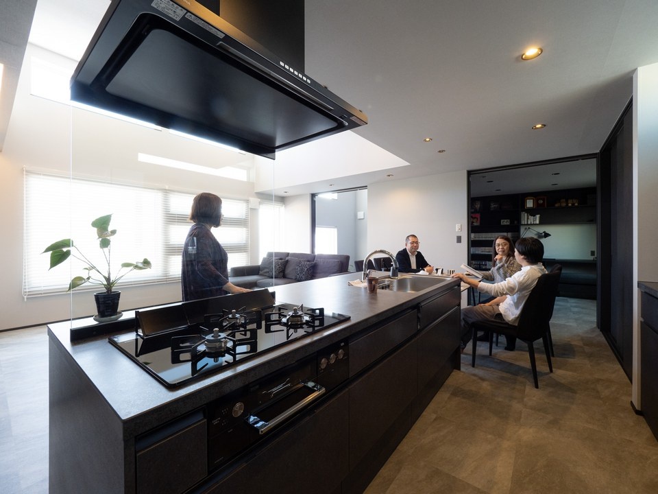 「キッチンが決まってから細かい部分を決めていきましたが、全て黒とグレーで揃えるのは大変。ポピュラーな白と比べて選択の幅が狭く、好みのものを選ぶと予算オーバーしてしまうことも。間取りより設備・建材選びに時間を費やしたぐらいです(奥様)」。