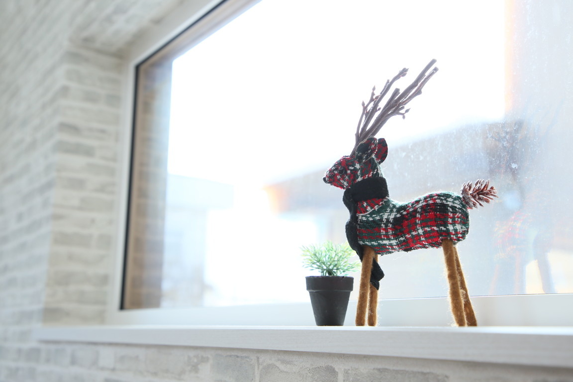 テレビの配置やプライバシーに考慮した高窓の窓台には季節の雑貨を飾って楽しんでいます。