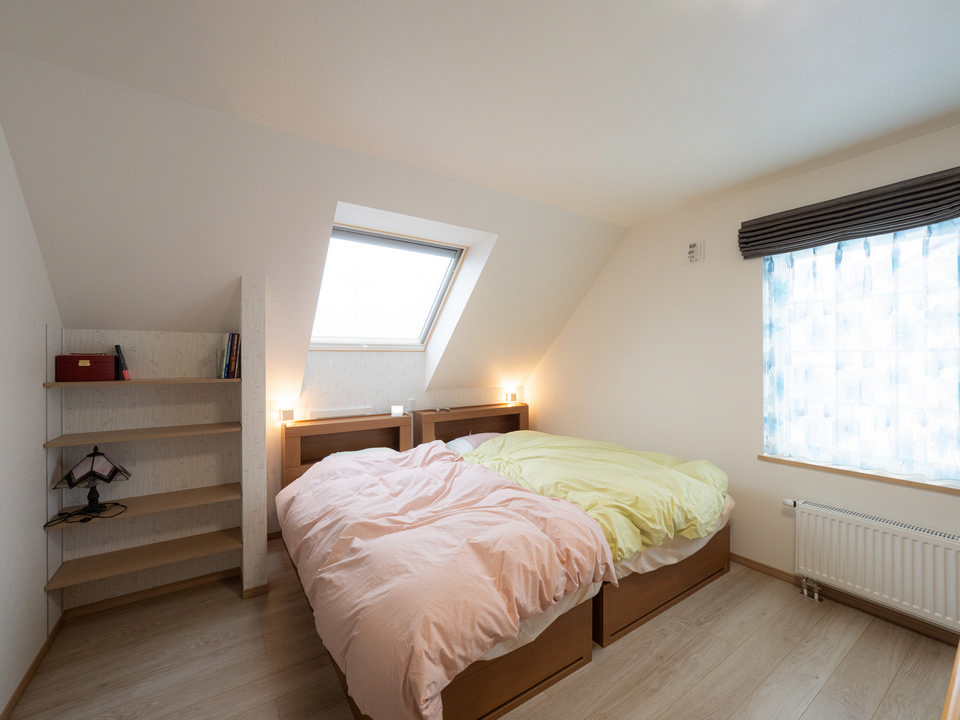 寝室には天窓があります。星空を見ながら寝て、朝陽で目覚めるとても贅沢な環境です。夏の暑い日は窓を開けると熱気も屋外に逃げていきます。