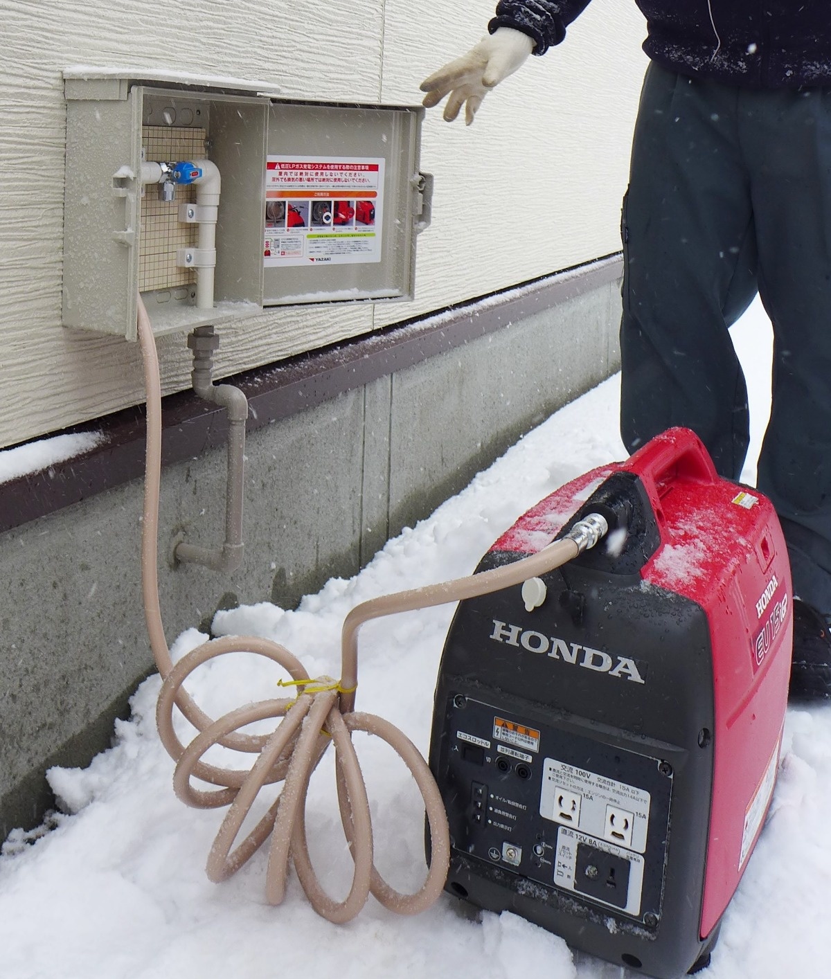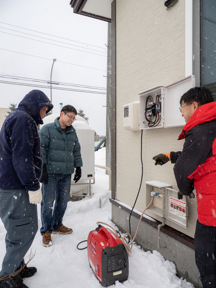 十勝・池田町の工務店・赤坂建設の赤坂正社長は「2003年の十勝沖地震や、2018年のブラックアウトでは、私の自宅は自家用発電機を設置していたので大変助かりました。自然災害による停電時でも、自宅の暖房、食品保存、スマホ充電、調理などができると安心だと思います。当社の専売特許というわけではないので、防災対策の一つとして家の新築・リフォームなどのタイミングでのご検討をおすすめします」と話してくれました。
