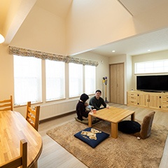 奥さま「吹き抜けがあるので、2階にいても1階にいる家族とのつながりを感じます。吹き抜けは寒いという噂も聞いていたのですが、赤坂さんに『性能の高い家なら寒くないし、空間が広く感じるし明るくなる』と教えていただいたので採用しました。良かったです」