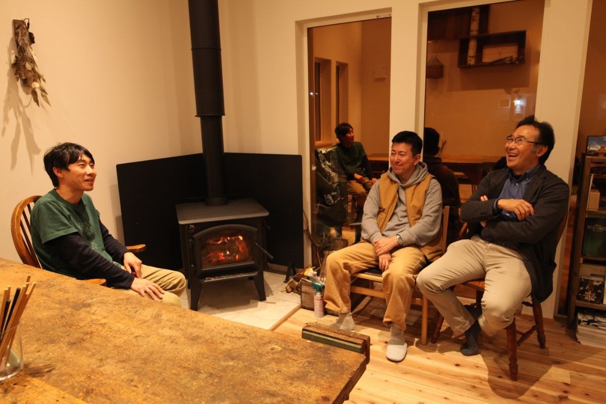 コモン棟で薪ストーブの炎を眺めながら、地域の魅力的な人材、生産者の話などをいっぱい教えていただき、その後、晩御飯で、近所の串揚げがめちゃめちゃ美味しいお店に連れて行ってもらいました。