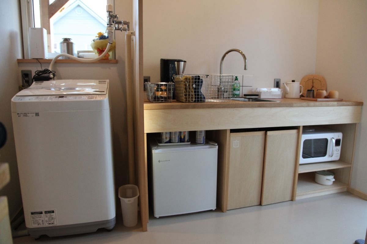 また建設工事は、タイニーハウスなどを得意とする長沼町の「yomogiya」 代表で、大工さんの中村直弘さんも中心になって取り組んでいただきました。
