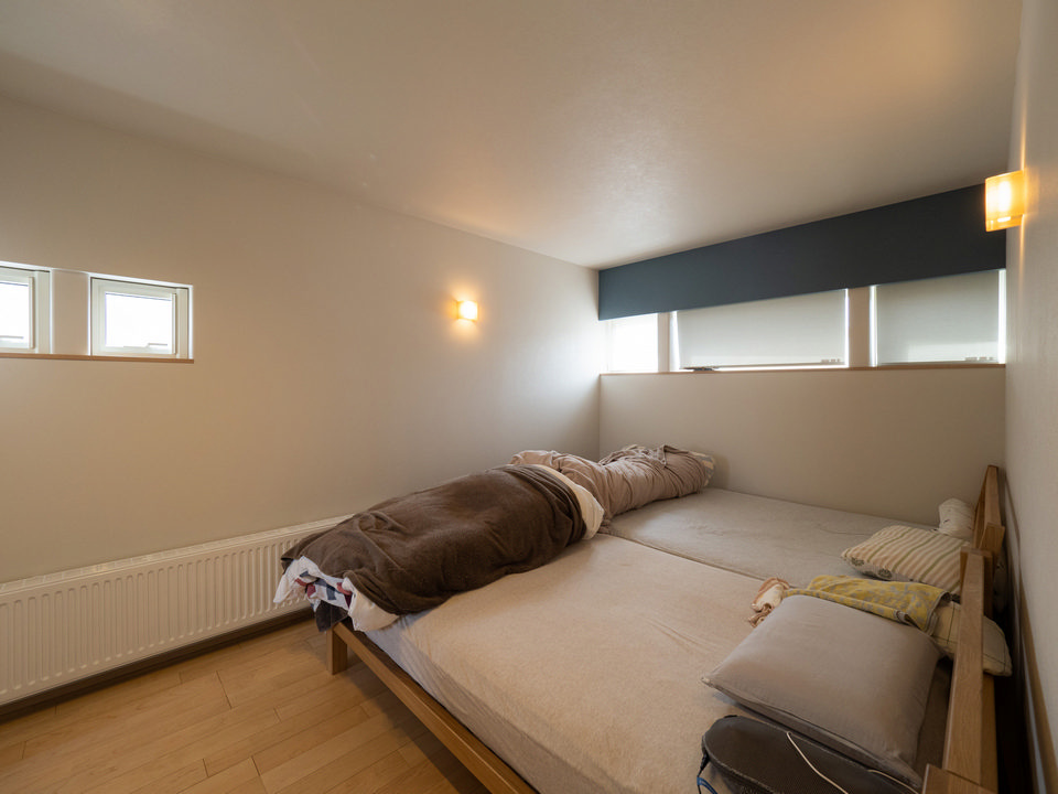 主寝室は、落ち着く雰囲気にするため、窓は小さめ。写真にはありませんが、隣接するウォークインクローゼットが便利です。