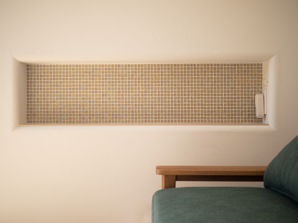 キッチン側のカウンター側にも深めのニッチが設けられています。「家族のマグカップなどよく使うものを置いています。すぐ取り出せるので便利です」。