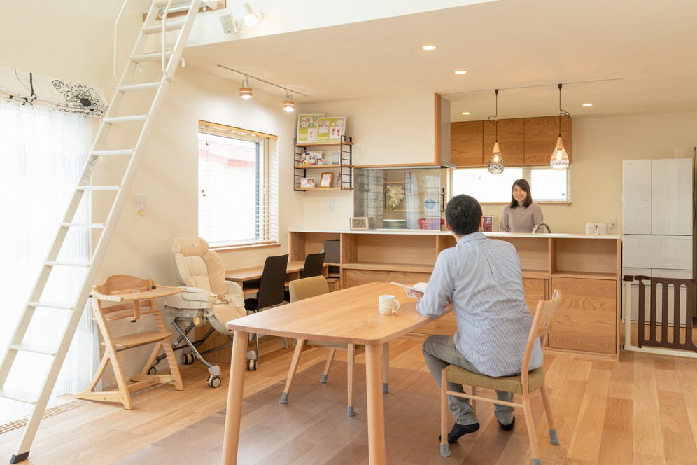 Fさん「平屋の一戸建てで、勾配屋根のリビングにロフトが付いた住宅でした。それまではモダンなテイストが好みでしたが、天然素材をふんだんに使った温もりのある内装や、断熱・気密性能の高さに心惹かれました。