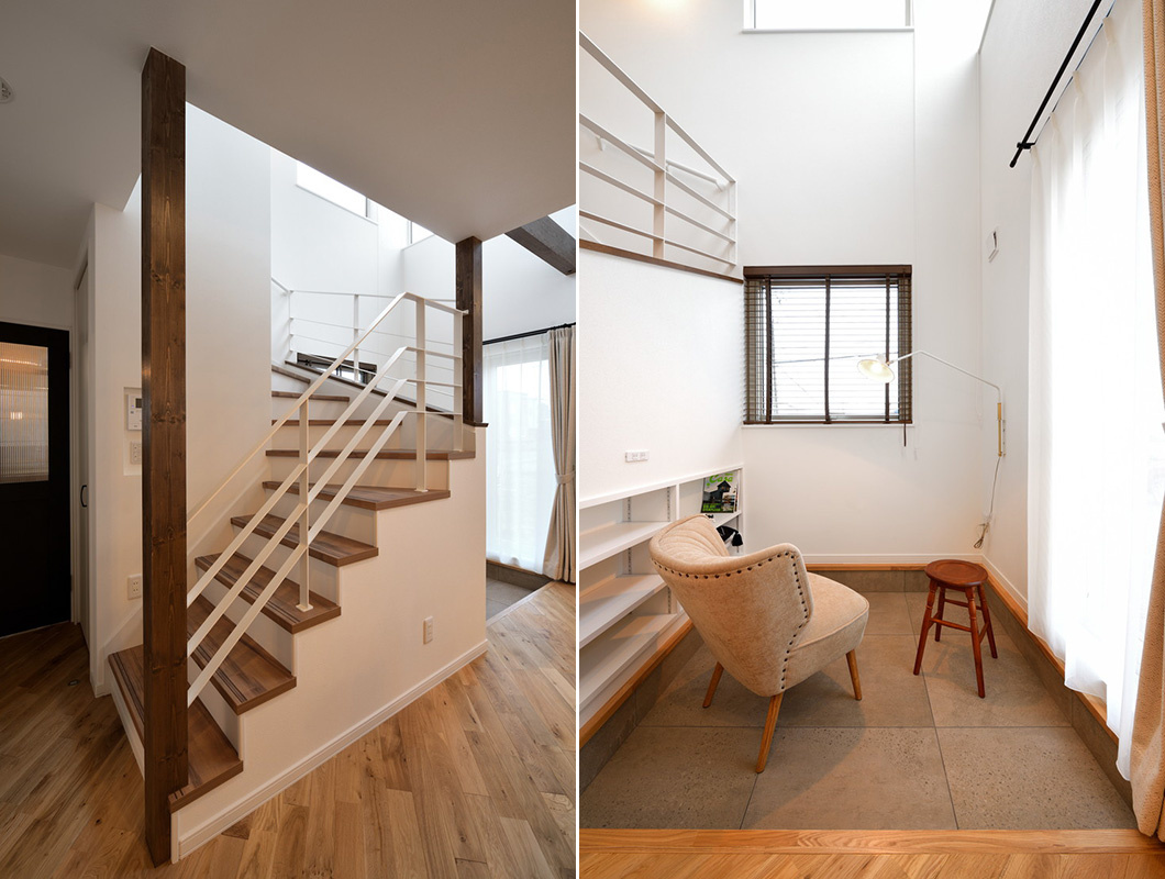 阿部さん「吹抜の窓からは、日中は空や雲、夜には月を眺めることができ、屋外の様子や時間の流れが自然と感じられる空間を心掛けました。チェアに座って読書をしたり、テーブルセットを置いてティータイムやお酒を楽しんだり、植物を置いてガーデニング・コーナーにするなど、お客さまの好みに合わせた使い方で、暮らしを豊かにしてくれるプラスアルファの空間を提案しています」。