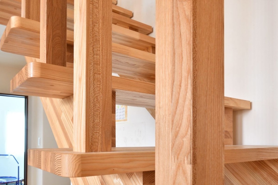 大工さんが作った木製の階段もとても素敵なので、まじまじと見ると、角の部分が丁寧に丸く加工されていて、うっかりぶつかっても痛くない配慮がなされています。