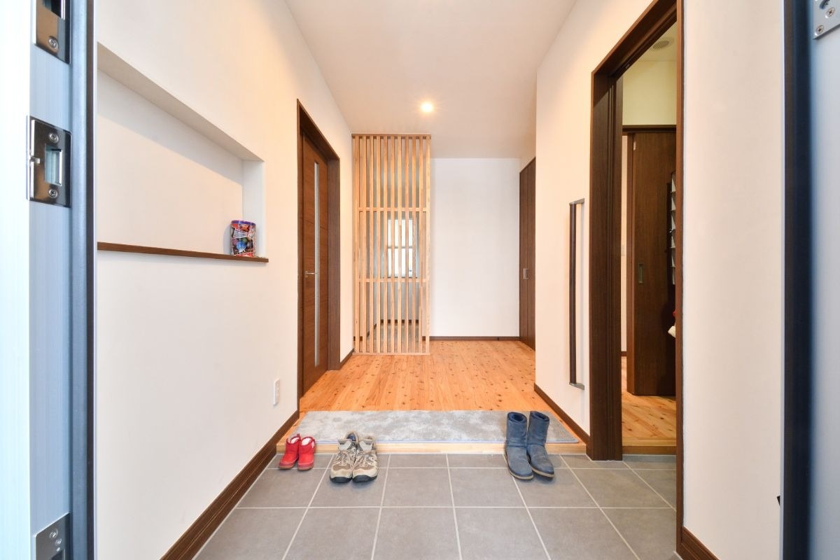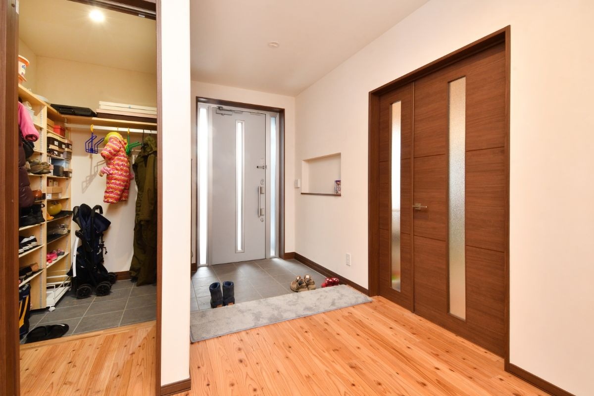 玄関にウォークスルークローゼットが設置されていて靴や傘、コートなどを収納できるからです。