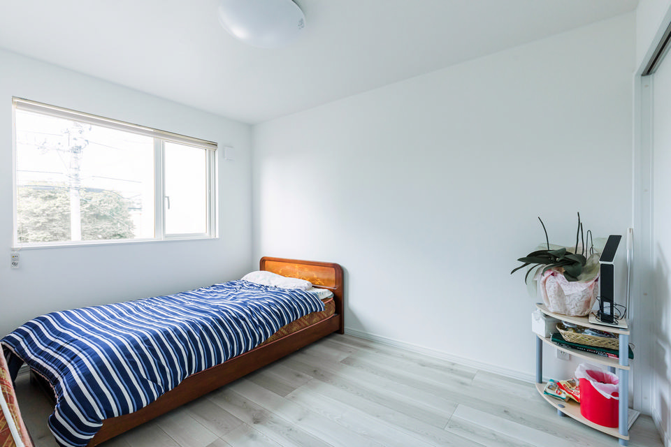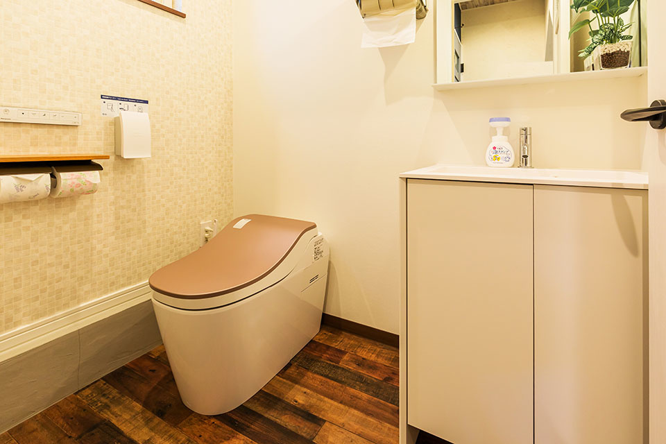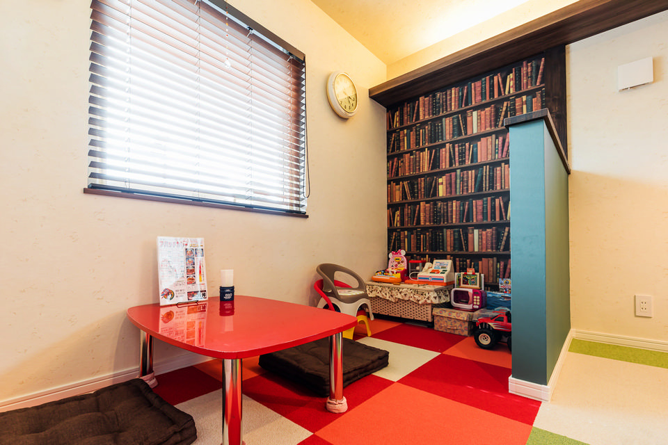 「主人が自動車整備士をしているので、クタクタになって帰ってきた時にゆっくりくつろげる場所にしたいと思いました」と牧野さん。お風呂は、ご主人に色柄を選んでもらいました。ご主人がくつろげる個室も1つあります。それから娘さんが帰省するときの個室も。